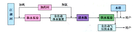 上述构筑物可根据具体情况后合并建造,在无水塔的情况下,可采用本公司生产的全自动气压供水器,辅助设备有JY型加药装置及消毒设备均有本公司提供。